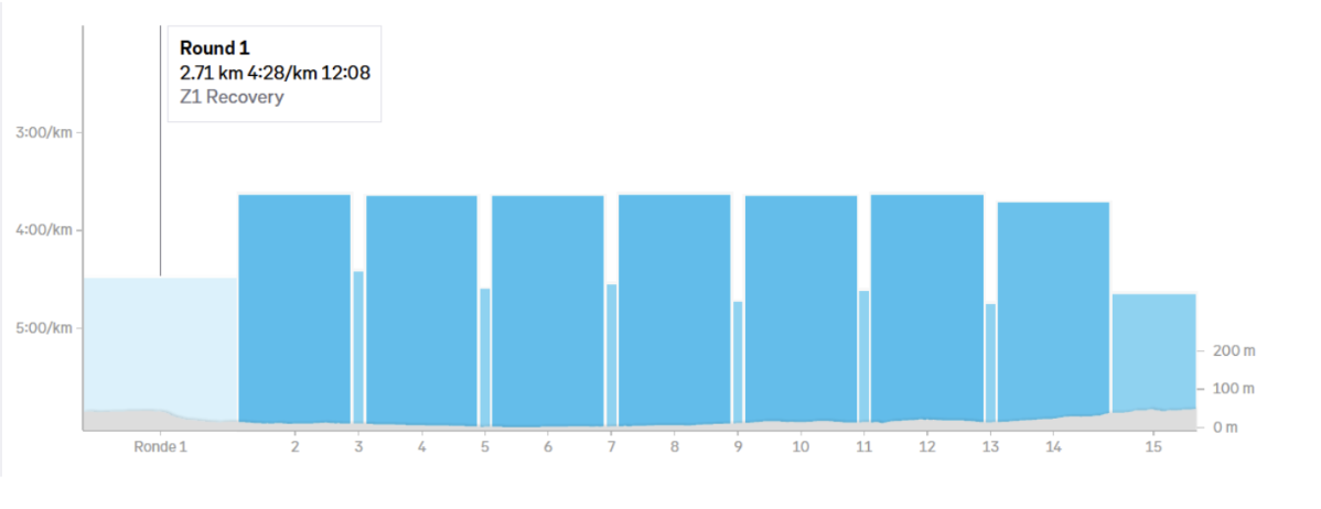 Our tip: Turn off your automatic splits, start taking manual splits and track your average lap pace throughout the session. This will tell you what you’re averaging for each rep in nice chunks and will isolate the warm up, recoveries and cool down from your analysis. Plus, it’ll give you a pretty graph to look at when you’re done!